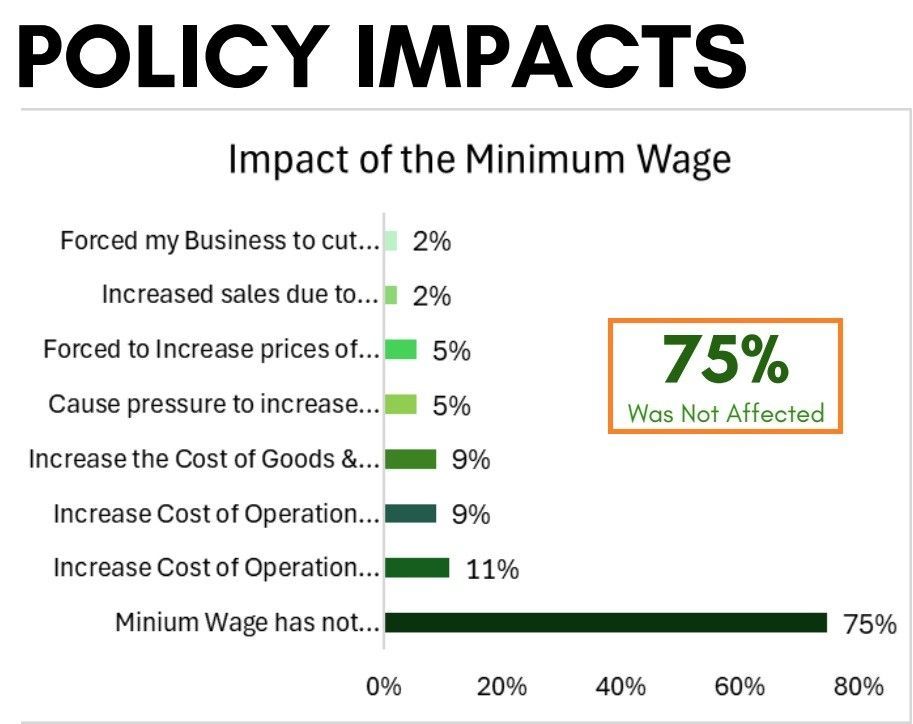 For the Small Business Sector respondents who made up (78%) of total respondents to the survey, Sales performance was mixed, with (40%) reporting decreased sales (31%) reporting higher sales, (30%) remaining the same when comparing Q1’ 25 to Q1’ 24, a -9% net movement.