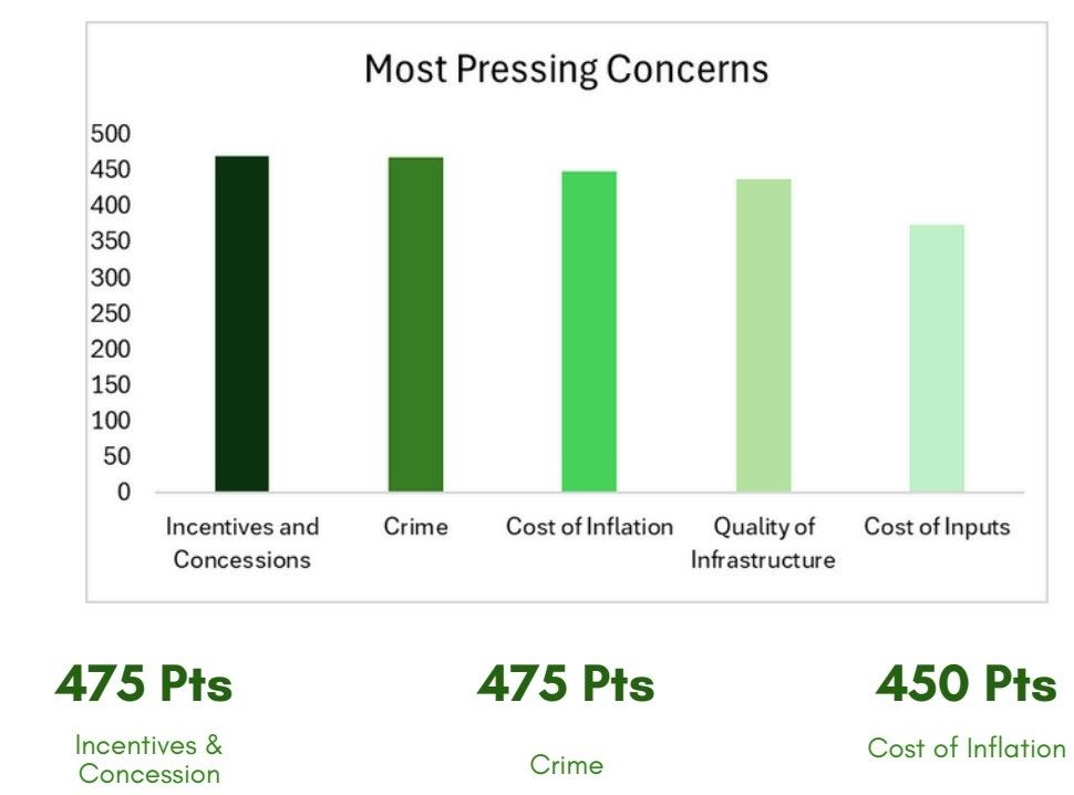 The most pressing concern for the small business sector was Accessing Incentives and Concessions, followed by Crime, then Inflation, next Quality of Infrastructure and then Cost of Inputs. (67%) of the small business respondents also were not very optimistic regarding the budget initiatives positively impacting their business.