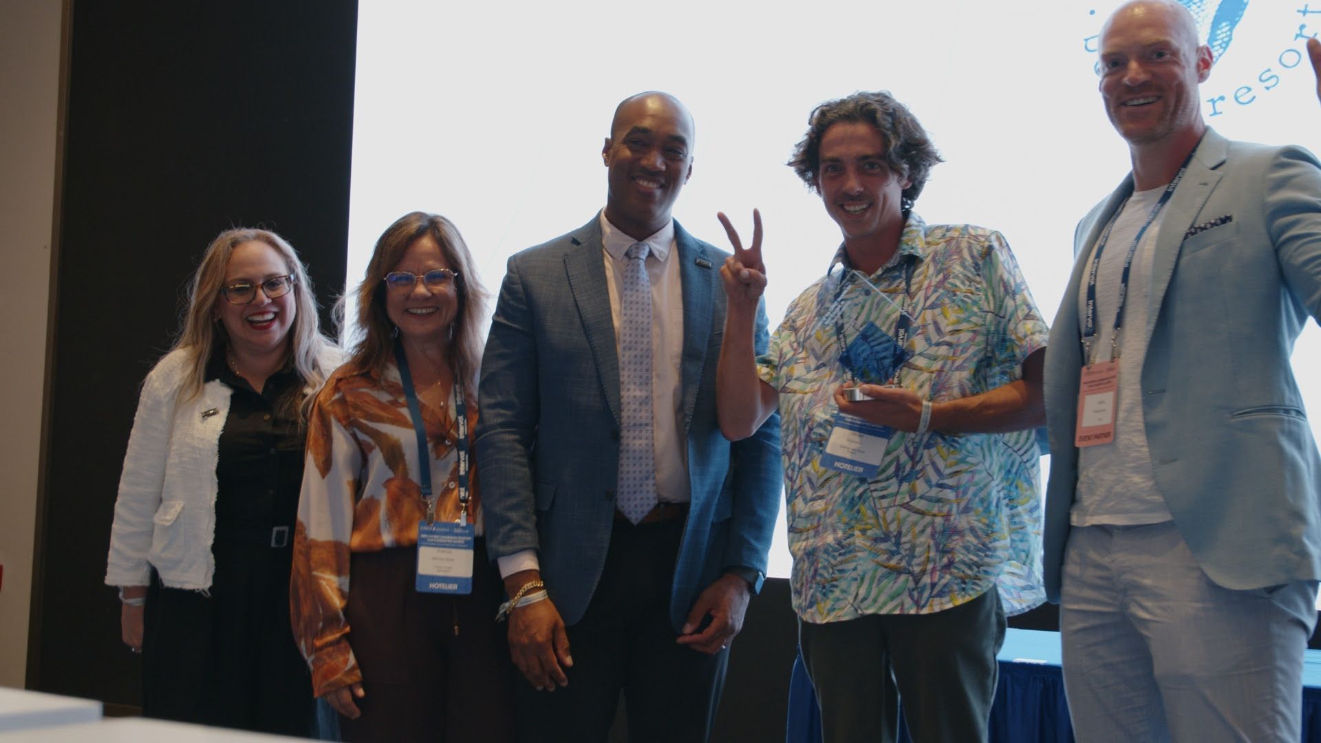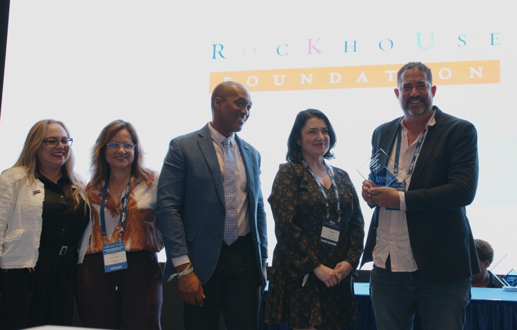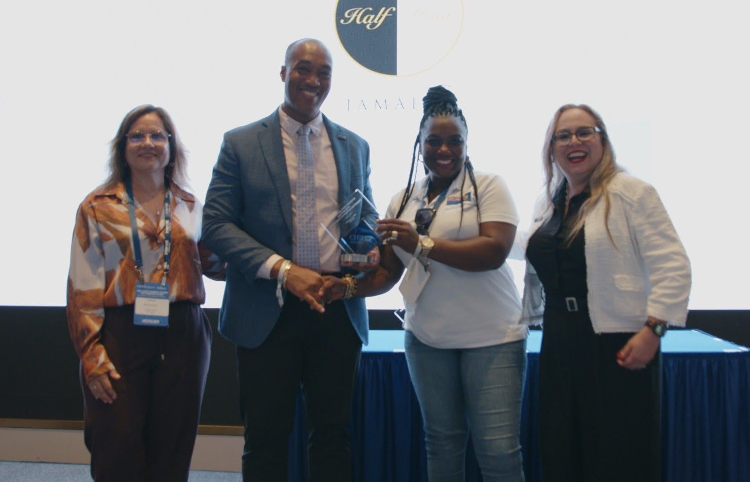 Social Responsibility (left to right): CHTA CEO Vanessa Ledesma, CHIEF Program Chair Patricia AffonsoDass, CHTA President Sanovnik Destang, CHIEF Platinum Partner Kasey Lohn - Interval International and Adam Shepard accepting on behalf of Rockhouse Foundation
