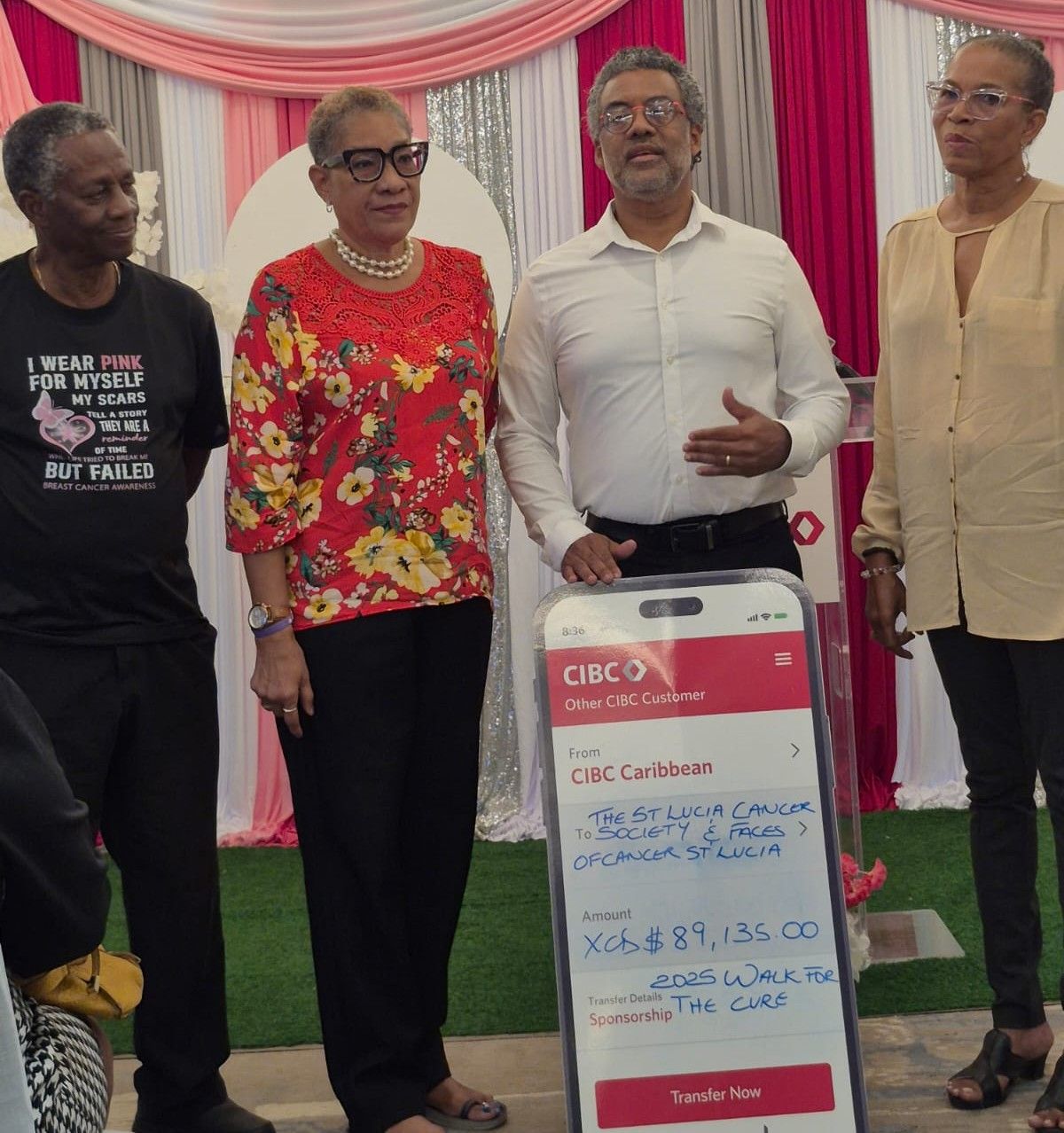 CIBC Caribbean today presented a combined total of XCD$89,135.20 to the Saint Lucia Cancer Society and the Faces of Cancer, representing the proceeds of Walk for the Cure 2025, the bank’s flagship annual cancer fundraising initiative.
